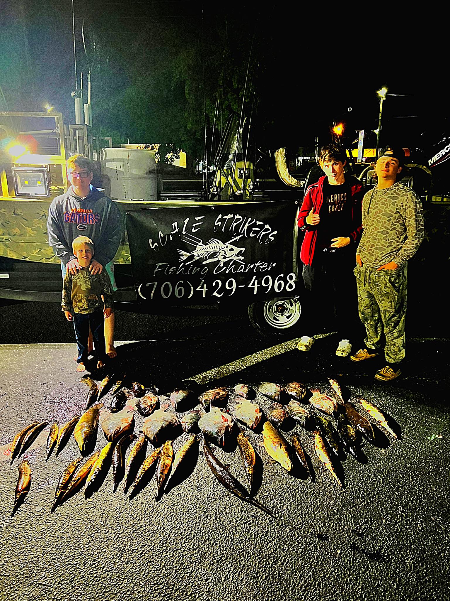 Our Lake City FL fishing charters offer memorable, family-friendly experiences for anglers of all levels. Browse through pictures from our guided night bowfishing and jigging trips to see the excitement firsthand. With clear waters and abundant fish species, every trip with Scale Strikers Fishing Charter is packed with action. Take a look at our photo gallery, and book your next fishing adventure with us today!